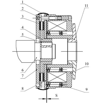 冶金起重電機接無電流通過時處于制定狀態,制定力矩產生可以在干式狀態下工作,接通直流電制動器松開,制動時轉子通過銜鐵盤倍彈簧壓向反摩擦面,產生制動力矩,銜鐵盤和定子產生氣隙,制動力矩的大小可以通過調節螺母進行調節。